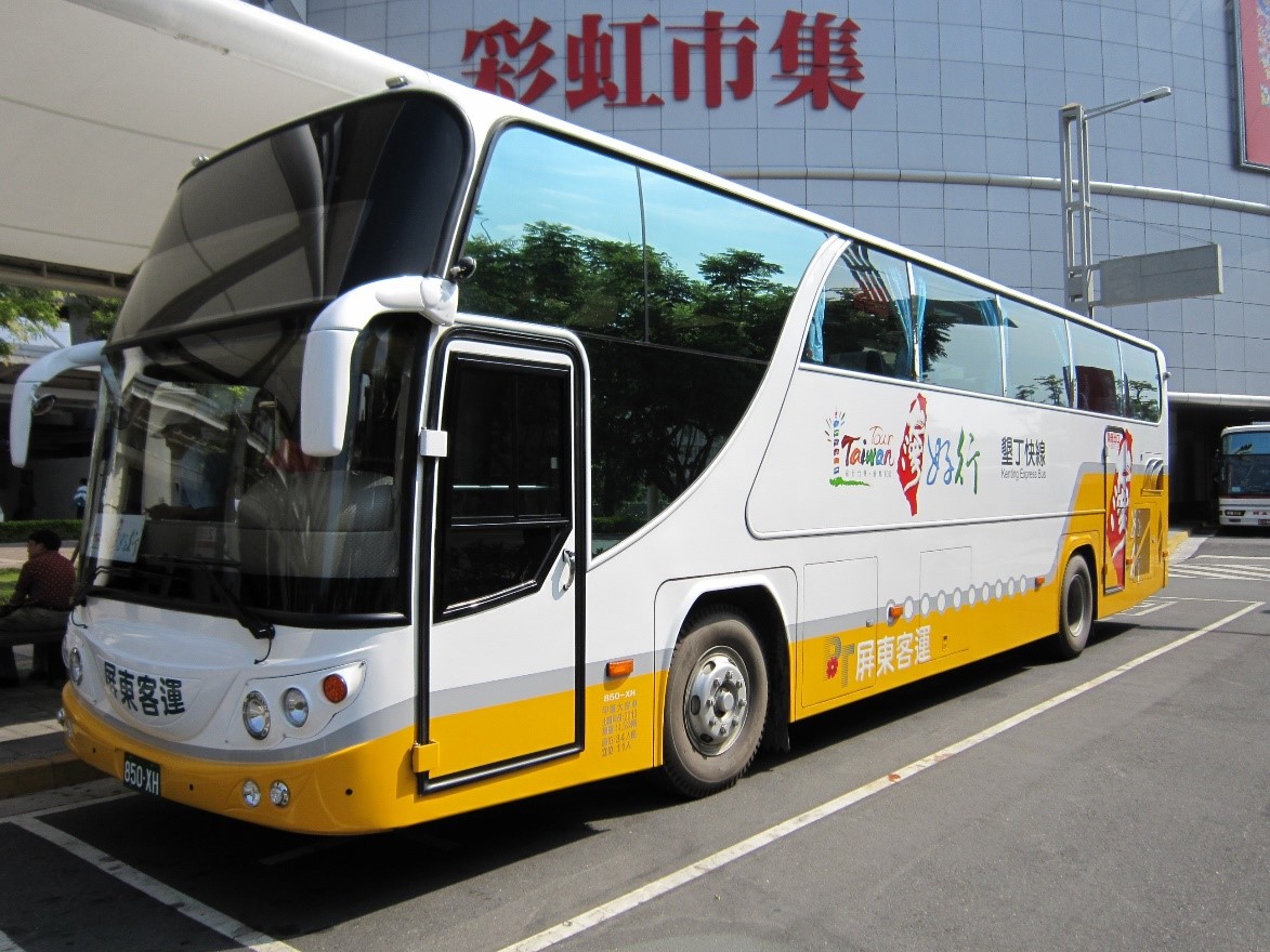 臺(tái)灣好行?墾丁快線為屏東客運(yùn)、高雄客運(yùn)、兩家客運(yùn)聯(lián)營(yíng),車體外型皆為橘白色,印有臺(tái)灣好行之字樣。(注意:現(xiàn)場(chǎng)加班之車輛非橘白色車體,請(qǐng)認(rèn)車頭寫9189車輛為墾丁快線車)